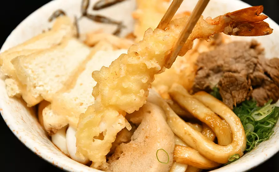 他にも自家製ダレによく絡んだ太麺の食感とともに松阪牛肉、めかぶ、とろろ、たまご、大きな海老天ぷらなど、お好みの組み合わせで楽しめるのもふくすけならでは!