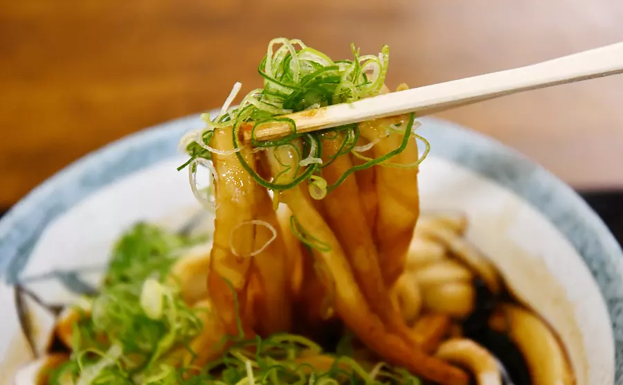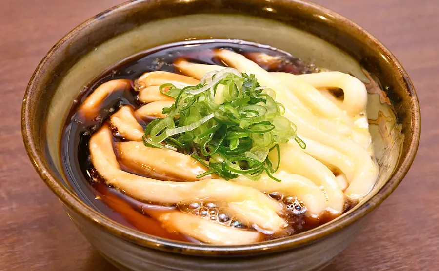 ふくすけの伊勢うどんは、もっちりとした食感の太麺と天然だしを使用した自家製ダレが自慢です。
