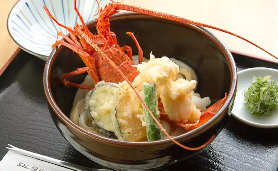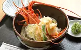 一押しは「せっかく伊勢まで来ていただいたのだから、伊勢名物をいっぺんに楽しんでもらいたい」と試行錯誤の上考案したメニュー『伊勢えびうどん』。伊勢えびが丸ごと一尾豪華にうどんの上に鎮座しています。