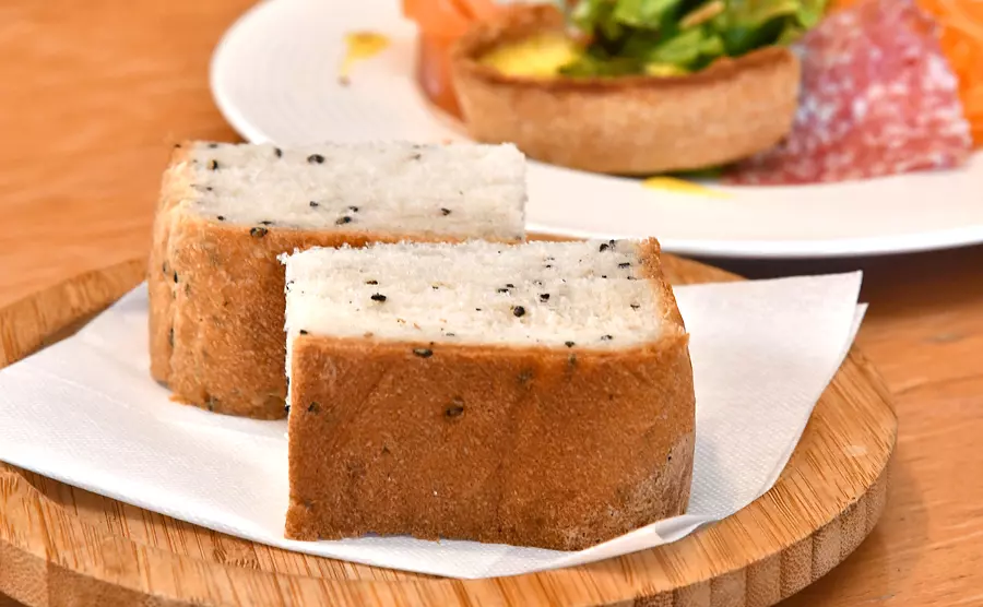 平日は前菜・地元九鬼の黒ゴマをふんだんに使った自家製パン・食後のドリンクと、出てきた瞬間「こんなに大きな伊勢エビとたくさんの魚介が‼」と驚くボリュームのある伊勢海老のペスカトーレ(半身)が3,300円。