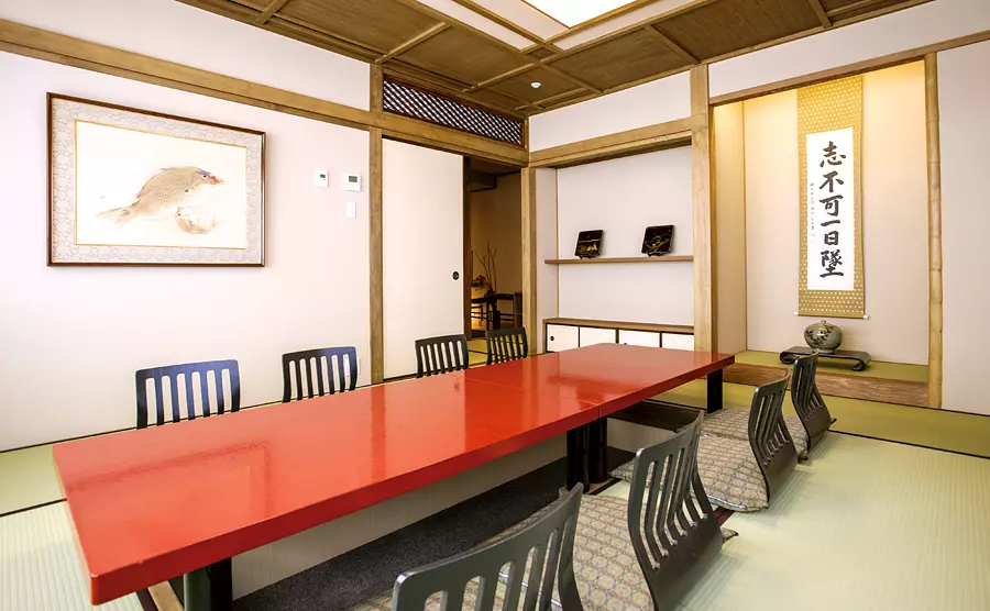 玄関の段差を無くしバリアフリーになった1階のテーブル席やカウンター席は車椅子でもそのままお食事が出来、一階の座敷・二階も大広間以外のお部屋は掘りこたつ式で個室も有るのでお子様連れの方でも安心してお食事を楽しめます。