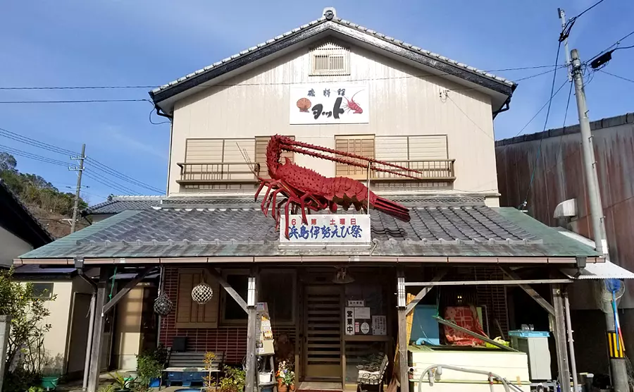 屋根の上の伊勢海老モニュメントが目印。地元の人にも愛されている創業50年のお店。