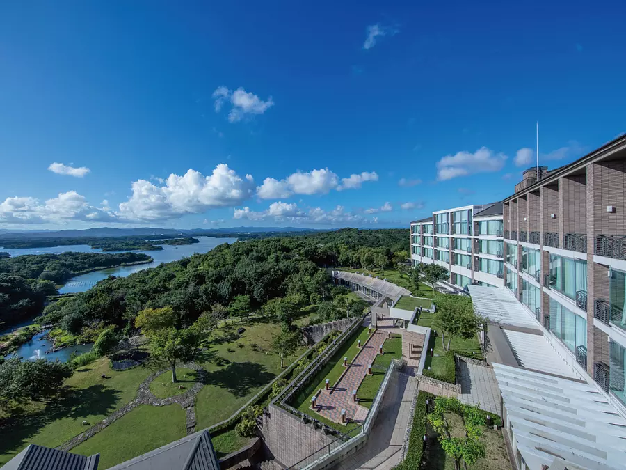 鳥羽湾の岬に建つ「鳥羽グランドホテル」からは、鮮やかなブルーの海、絵になる島々など、心が洗われるような美しい景色を見ることができます。