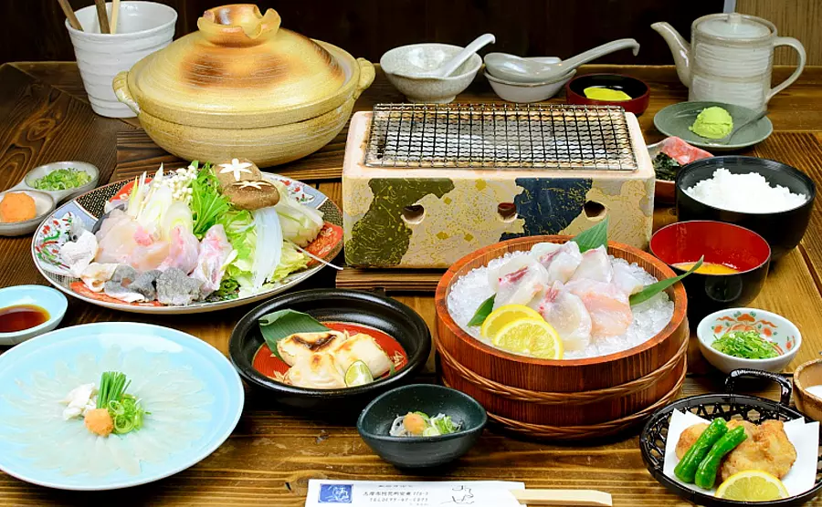 10月中旬から3月までのシーズンのみ地元の漁協に揚がったあのりふぐをフルコースで味わえる宿。
