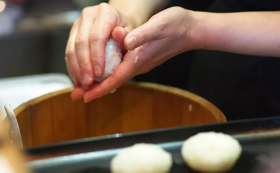 天ぷら定食屋を営んでいた水谷ヨネさんが昼食を作る暇もない中、夫には栄養のあるものを食べてもらいたいと車エビの天ぷらの切れ端をおにぎりに入れて作ったものが初代天むす。その後、試行錯誤を繰り返し独自の味付け方法を生み出し商品として提供を始めたといいます。