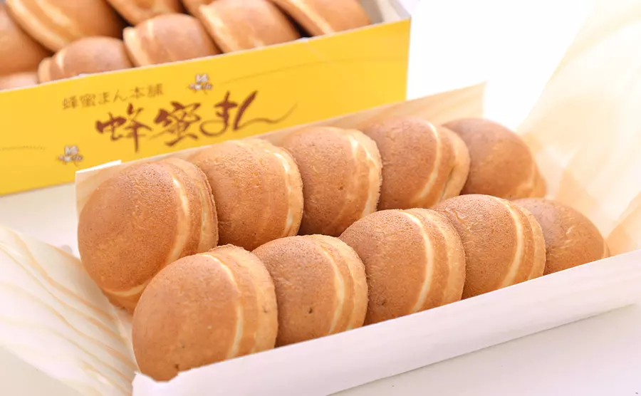 昭和28年、養蜂業を営んでいた初代が「蜂蜜をもっと身近に」と生み出した、津市民に「はちまん」の愛称で親しまれているおやつ。
