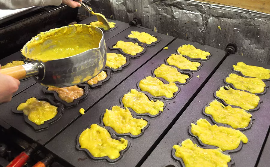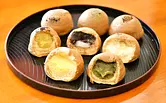 「ぱん」と「まんじゅう」を合わせた、隠れた伊勢名物の郷土菓子。形はたこ焼きのような半球型で、味は今川焼のような焼きまんじゅうです。はるか昔からお伊勢参りに参拝する人々に親しまれてきました。