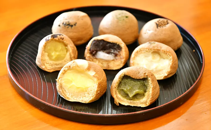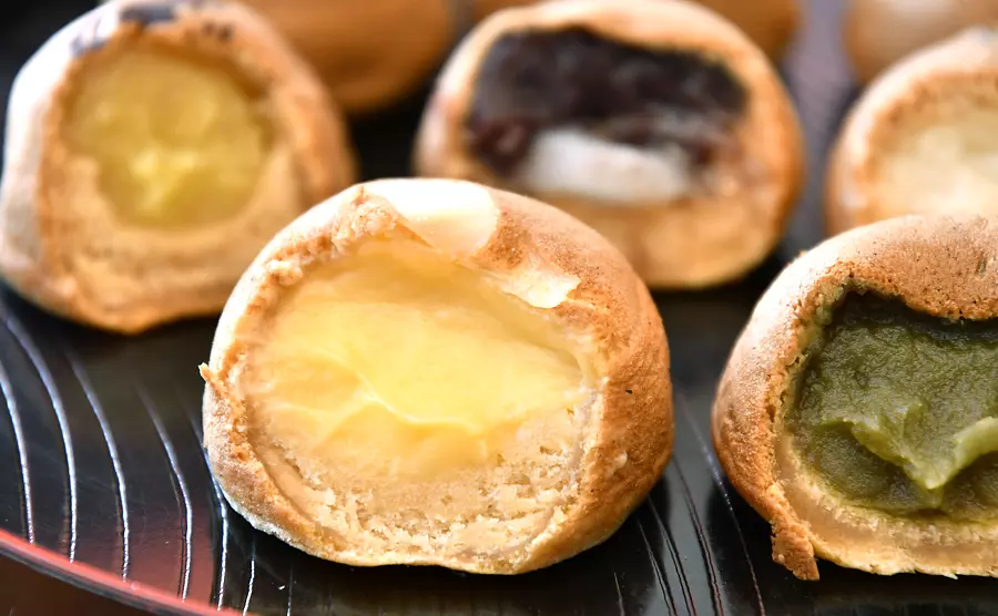 蜂蜜の優しい甘さのしっとりもっちりした生地と中の餡のバランスが絶妙。常時8種類の餡と季節限定の餡を楽しめます。サイズも一口サイズなので、食べ歩きにも最適。