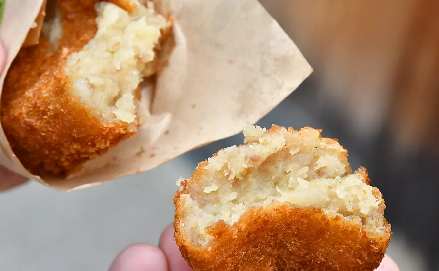 おやつ感覚で食べることができる小ぶりの『コロッケ』はラードで上げているため、しつこくなくサクッと何個でも食べれてしまいそう。