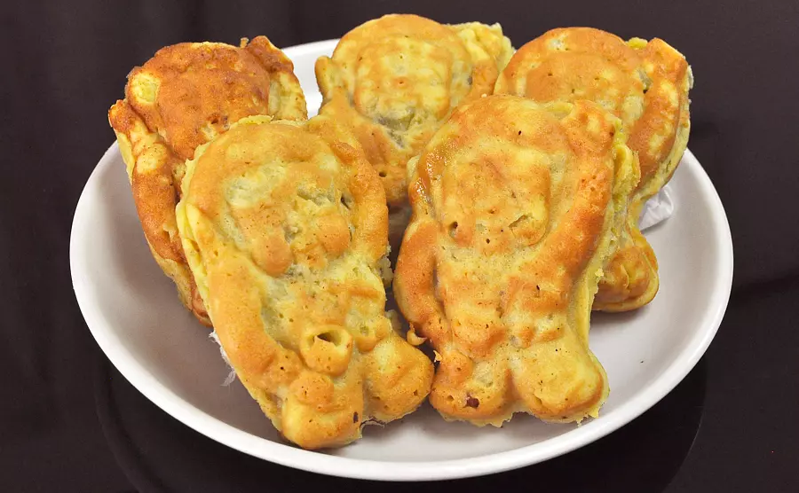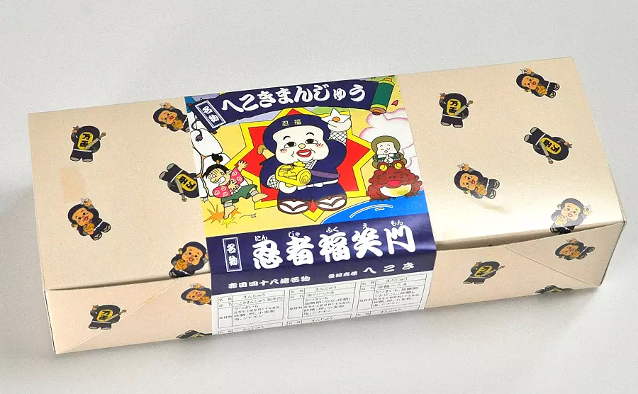 『へこきまんじゅう』。一度聞いたら忘れられないインパクトのあるネーミングに、どんなお菓子なのかな?と興味がわきますよね。まんじゅうと名前についていますが、サツマイモ生地で出来たたいやき?のような焼き菓子です。