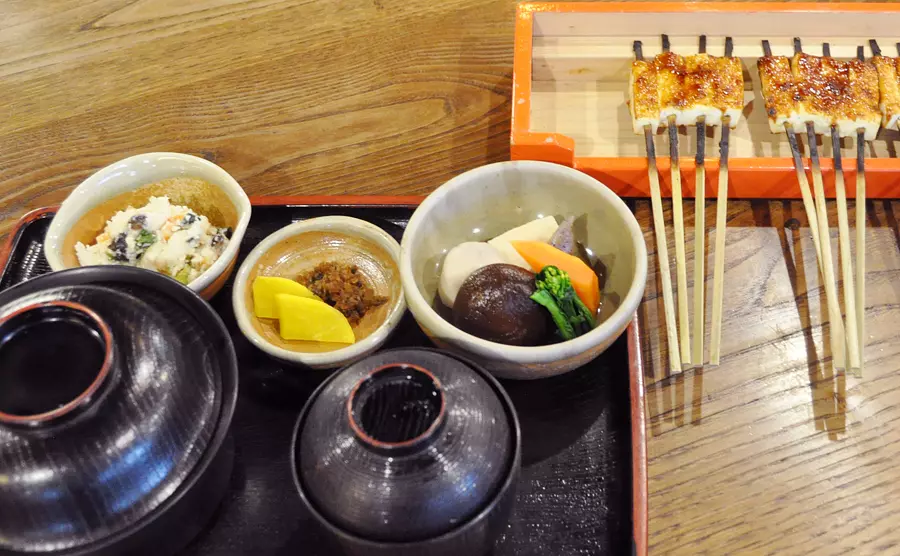 伊賀地方では古くからある伝統料理の田楽。田楽座わかやの「田楽」は、地元有機栽培で獲れた大豆と、天然にがりを使用して作ったお豆腐。約1000日間熟成させた代々受け継がれてきた秘伝味噌。低温でじっくり焼き上げるための月ヶ瀬の炭。選りすぐりの材料を使い、昔ながらの製法で伝統の味を守り続けています。また、2階には、お座敷タイプの個室、テーブルタイプの個室もあります。(個室の予約もできます)