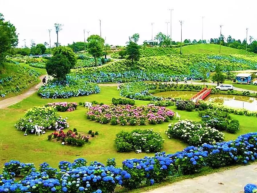 29品種77,700株のあじさい、丘陵地の環境を活かした植栽の美しさから、日本一きれいなあじさい園と評され、お子様からご年配の方まで世代を問わず、ご家族そろって楽しんで頂けます。日常生活では見ることのできない「癒しの花景」をお楽しみ下さい。