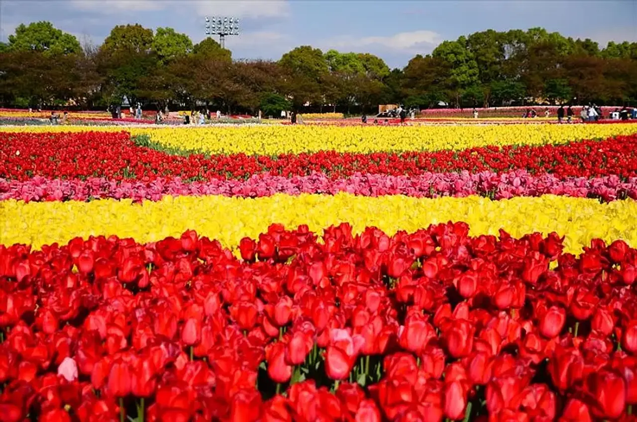 里内にある国内最大級の花園 「花ひろば」は、3月中旬頃から4月中旬頃には約180万球のスケールのチューリップが本格的に見ごろを迎えます。赤・白・黄色のカラーを中心にダイナミックなチューリップの園’をご覧いただけます。