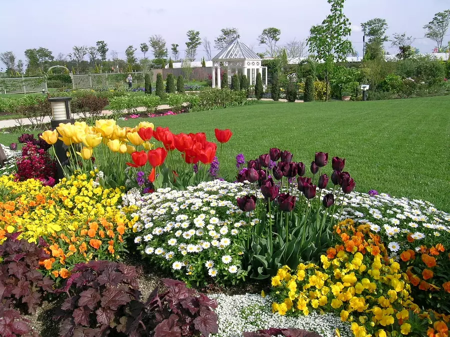 里内にある国内最大級の花園 「花ひろば」は、3月中旬頃から4月中旬頃には約180万球のスケールのチューリップが本格的に見ごろを迎えます。赤・白・黄色のカラーを中心にダイナミックなチューリップの園’をご覧いただけます。