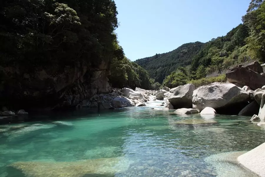 清流に浸蝕された巨岩・奇石が、すばらしい渓谷美を約1kmにわたっておりなしています。