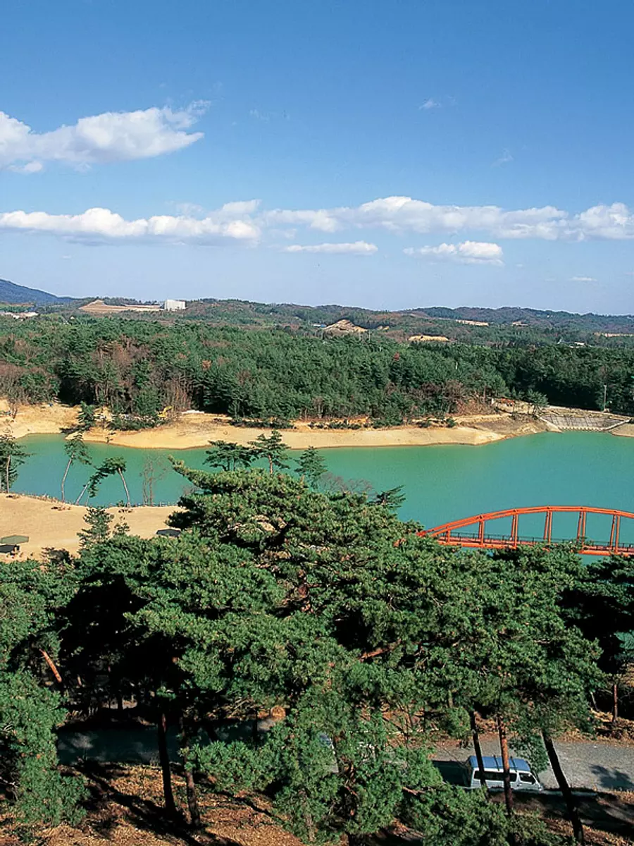 緩やかな赤松林の丘陵地帯に囲まれた員弁大池のほとりにあって、閑静な環境のなか、約7.3haにもわたって広がる公園です。