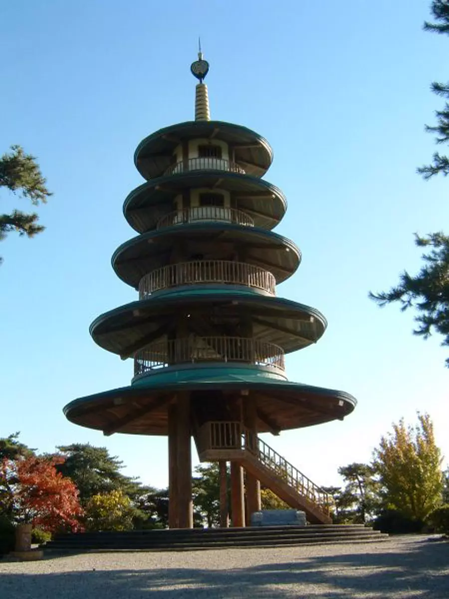 公園には運動不足解消にぴったりの遊歩道、鈴鹿の山々とその麓に広がる北勢の町並みを見渡す眺めが素晴らしい五重の塔シンボルタワーなどがあります。