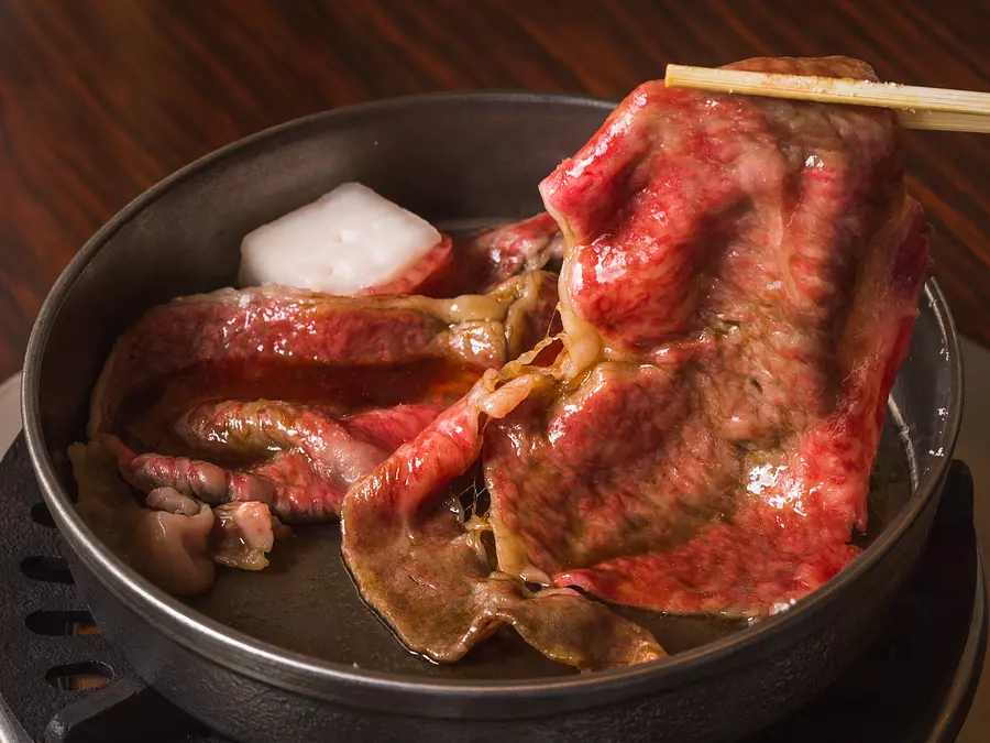 明治時代の文明開化に始まり、初代店主による「良い肉で貫け」の家訓のもと、松阪牛とともに時代を歩んできた名店。すき焼きは、少し厚めに切った極上の松阪牛の肉を重厚な南部鉄のすき焼き鍋でじんわりと焼き上げるのが伝統です。芳しい香りを纏い最高の状態に焼き上がった肉を、心ゆくまで味わうことができます。
