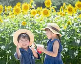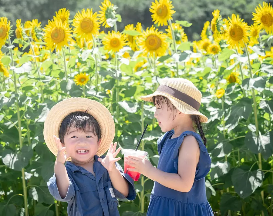 志摩市観光農園のひまわりとサイダー