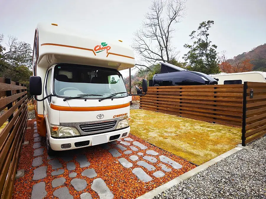 市街地・名阪国道から近く、森林公園に隣接したRVパーク。焚火もできます。