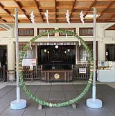 神社によっても多少作法が異なりますが、茅の輪くぐりは、まず茅の輪の前で軽く礼をした後、またいで輪をくぐったら左まわりで正面に戻り、次に輪をまたいでくぐったら右まわりで正面に戻ったあと、神前に進んで参拝します。