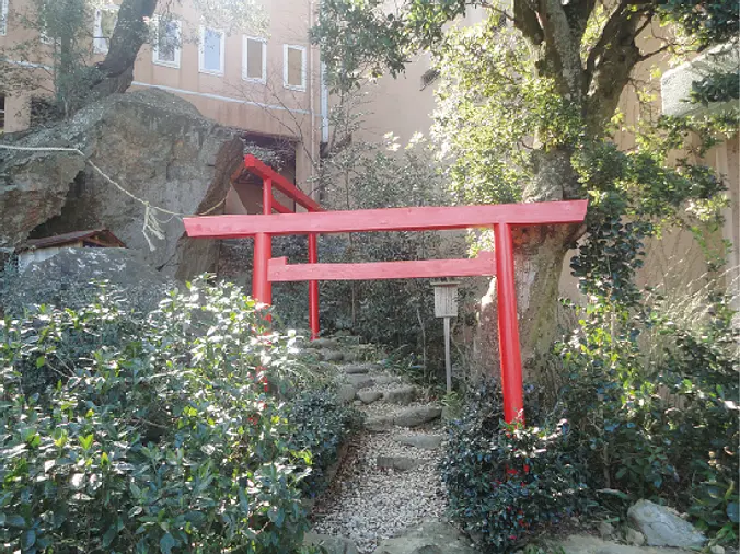 岩窟をご神体とする神社。別名「子安の宮」とも呼ばれ、安産や子どもの健やかな成長を願う人の信仰を集めています。無事に出産をおえた人が奉納するよだれかけが多数掛けられています。