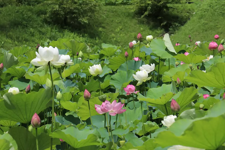 ハスの花は6月下旬頃から咲きはじめ、見ごろは7月中旬。