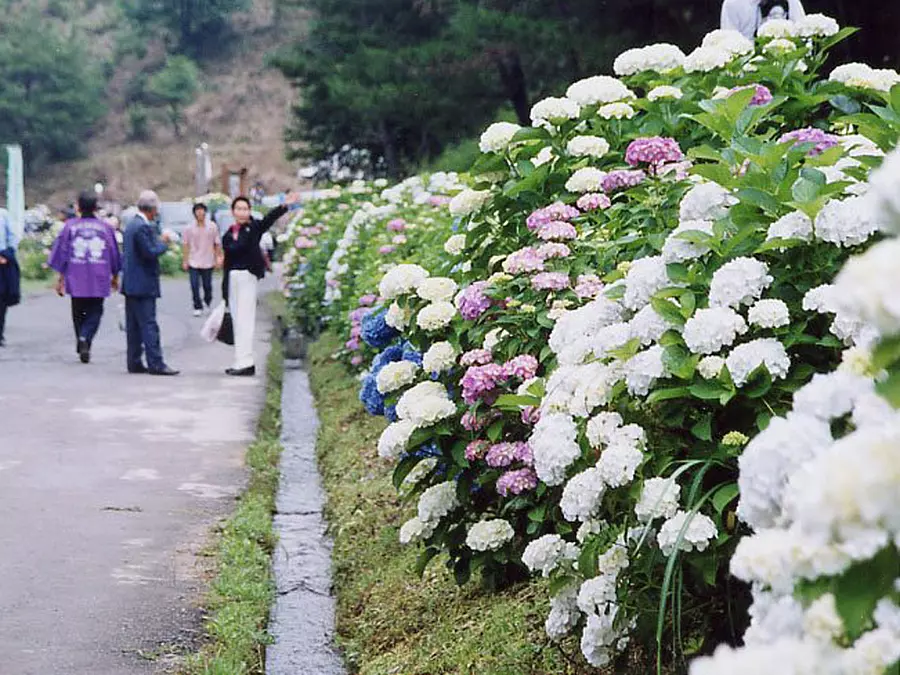 また、この場所はあじさいの名所としても有名で、6月中旬には、5000本のあじさいが咲き誇ります。