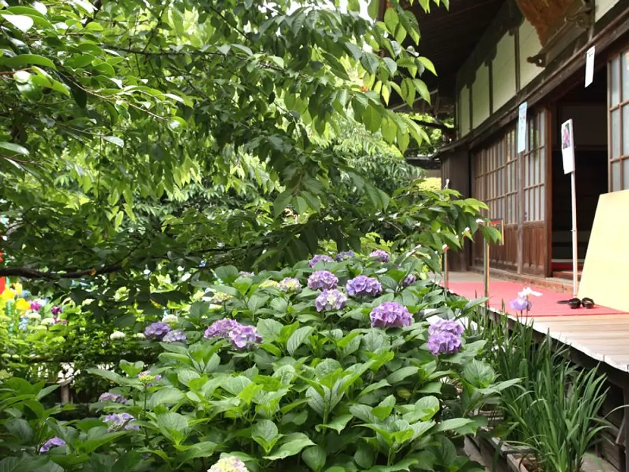 6月になると寺の周辺一面にあじさいの花が咲き乱れ、まるで「あじさいの中に寺」があるかのように見えることから、誰言うとなく「あじさい寺」と呼ばれている。