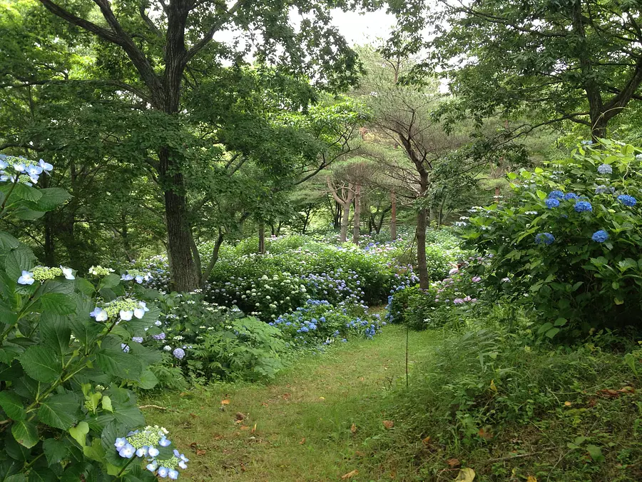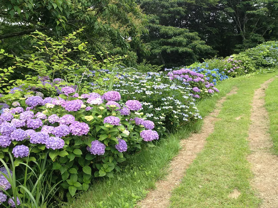 園内のイングリッシュガーデンと遊歩道では、毎年6月頃にあじさいが見頃を迎えます。
