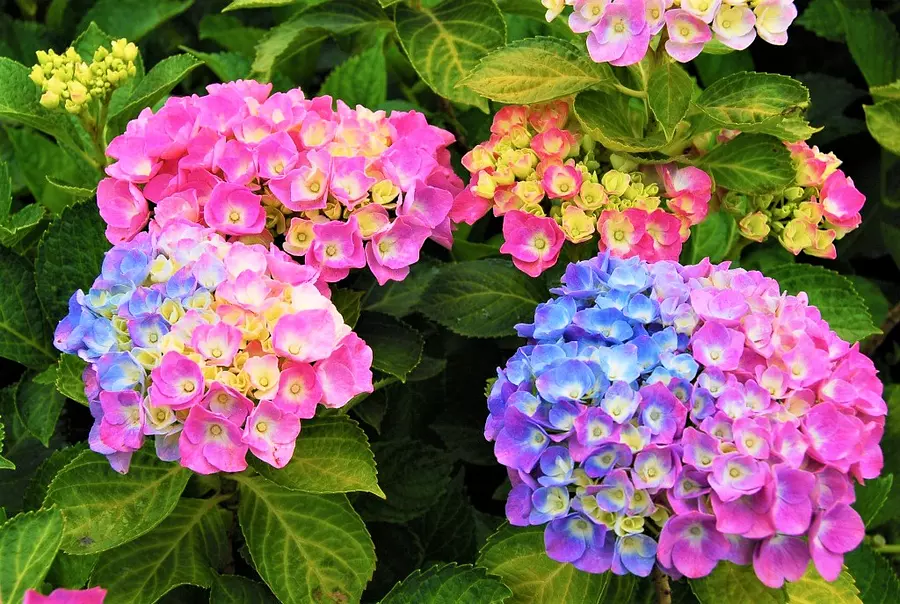 園内には、ダンスパーティーや万華鏡など園芸専門店ならではの人気の園芸品種や、白やピンクのアナベルといったアメリカアジサイ、円錐状に花をつけるピラミッドアジサイ、ヤマアジサイなど、約100品種1,000株のアジサイを楽しむことができます。
