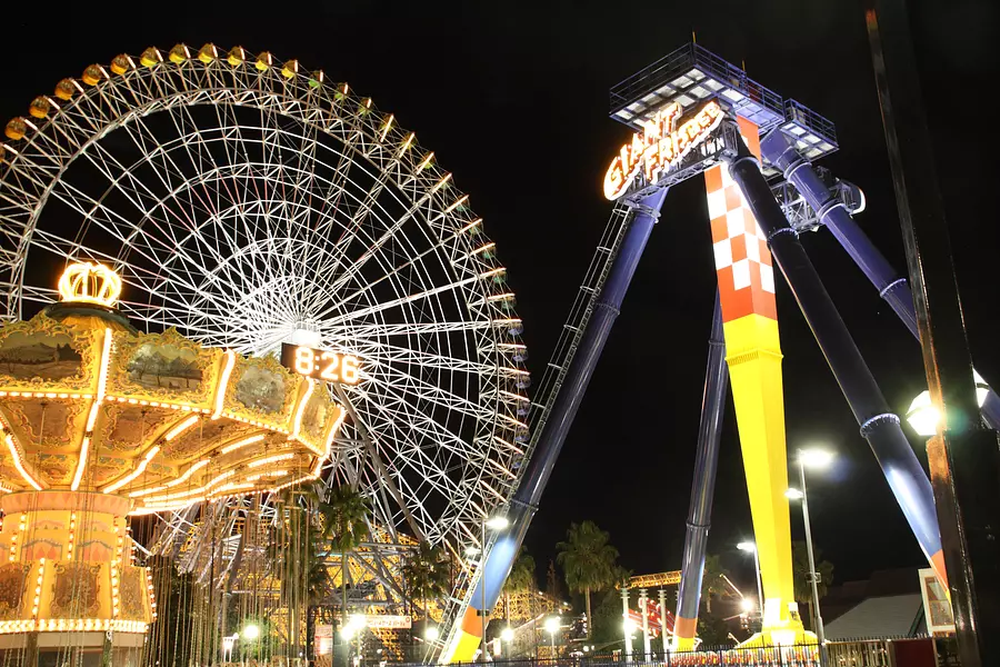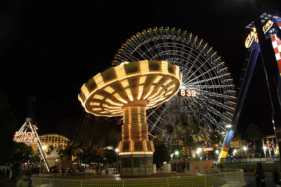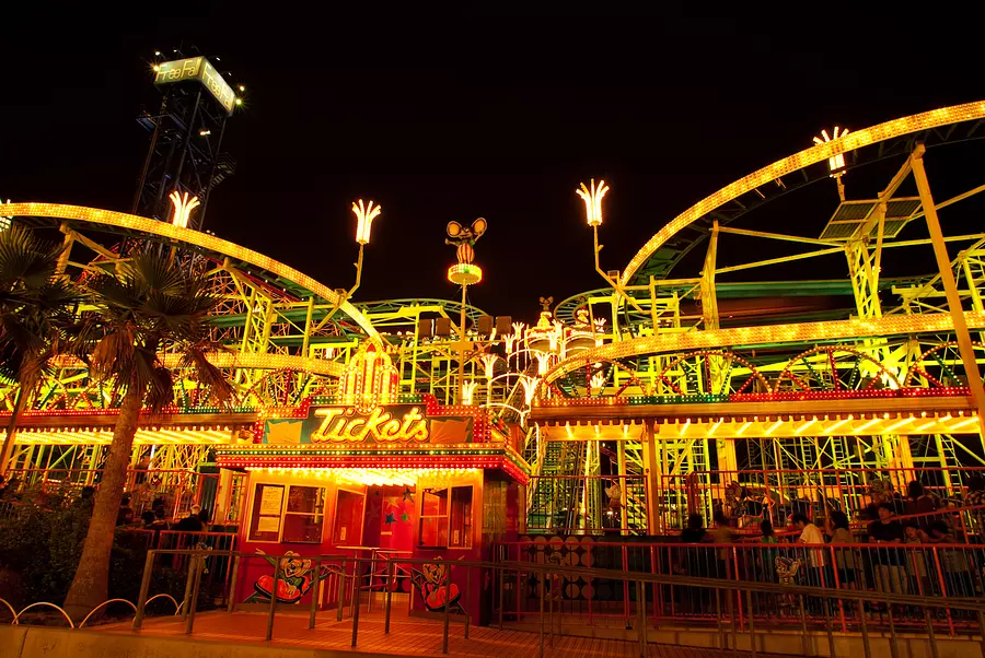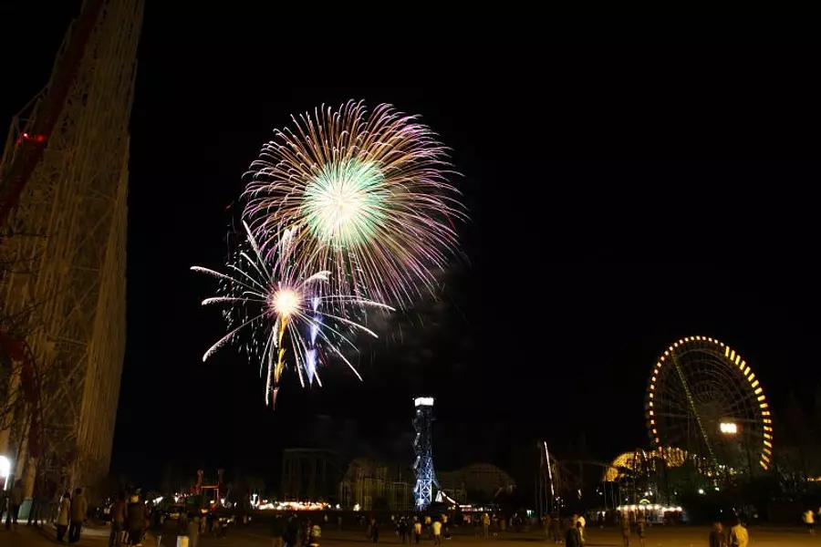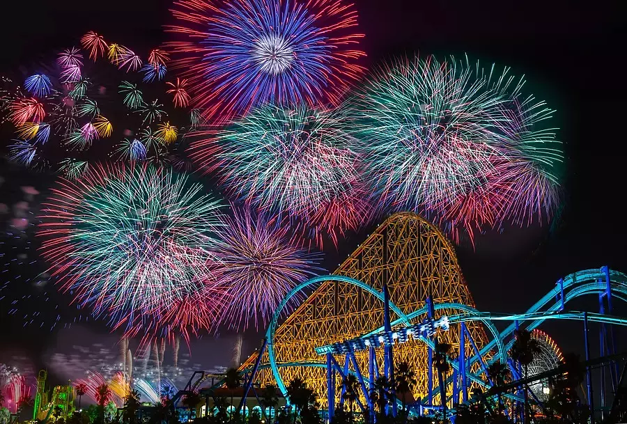 ナイター営業日には、大迫力の花火と華やかなショーが夜のパークを彩ります。