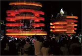 松阪・八雲・御厨(みくりや)の3つの神社から御輿が繰り出し町中を勇壮に練り歩く「三社みこし」がみもの。法被に身を包んだ1,000人もの老若男女が、まちなかを練り歩きます。特にクライマックスの夜渡御はたくさんの人出で動きもつかぬほど。