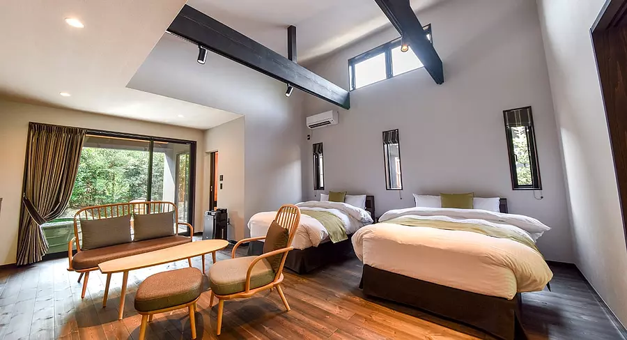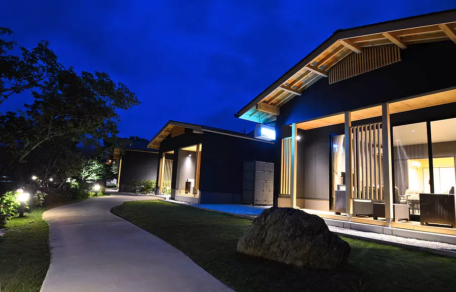 ヴィラタイプの一棟建て客室は完全個室のプライベート空間。