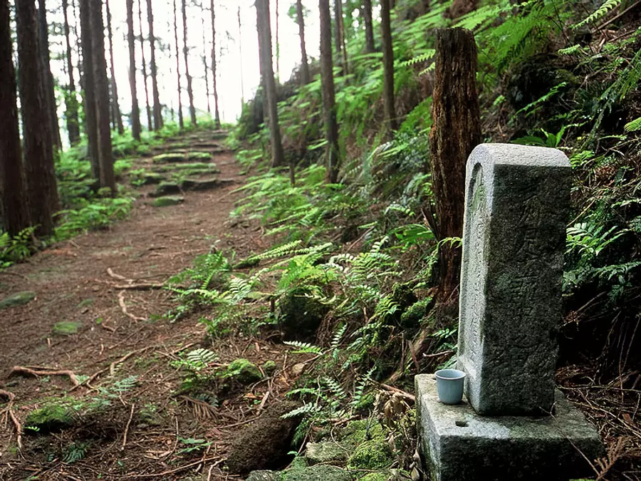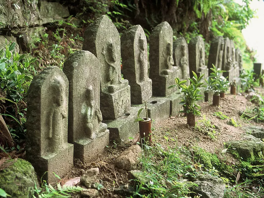 巡礼者たちに「西国第一の難所」といわれ、かつては山賊や狼が出没した道。八鬼山越えでは石畳道の傍らに町石をかねた地蔵や石仏、巡礼墓碑が数多く見られます。