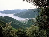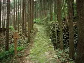 熊野市の二木島と新鹿を結ぶルートで、ほぼ直下をJR逢神坂トンネルが貫いています。古くから捕鯨の里として知られる二木島から古道にはいると、杉と桧による山林でほぼ全区間に端正な石畳道が通じており、適度なアップダウンが楽しめハイカー達に人気のコースです。