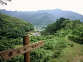 道幅も広く、勾配もゆるいので歩きやすい道です。重い荷物を担いでも越えることができるということで、この名前がついたとも言われています。途中の沖見平は見晴らしのいい休憩所となっており、江戸時代の紀行作家・鈴木牧之が詠んだ二句が書かれた木板が立っています。
