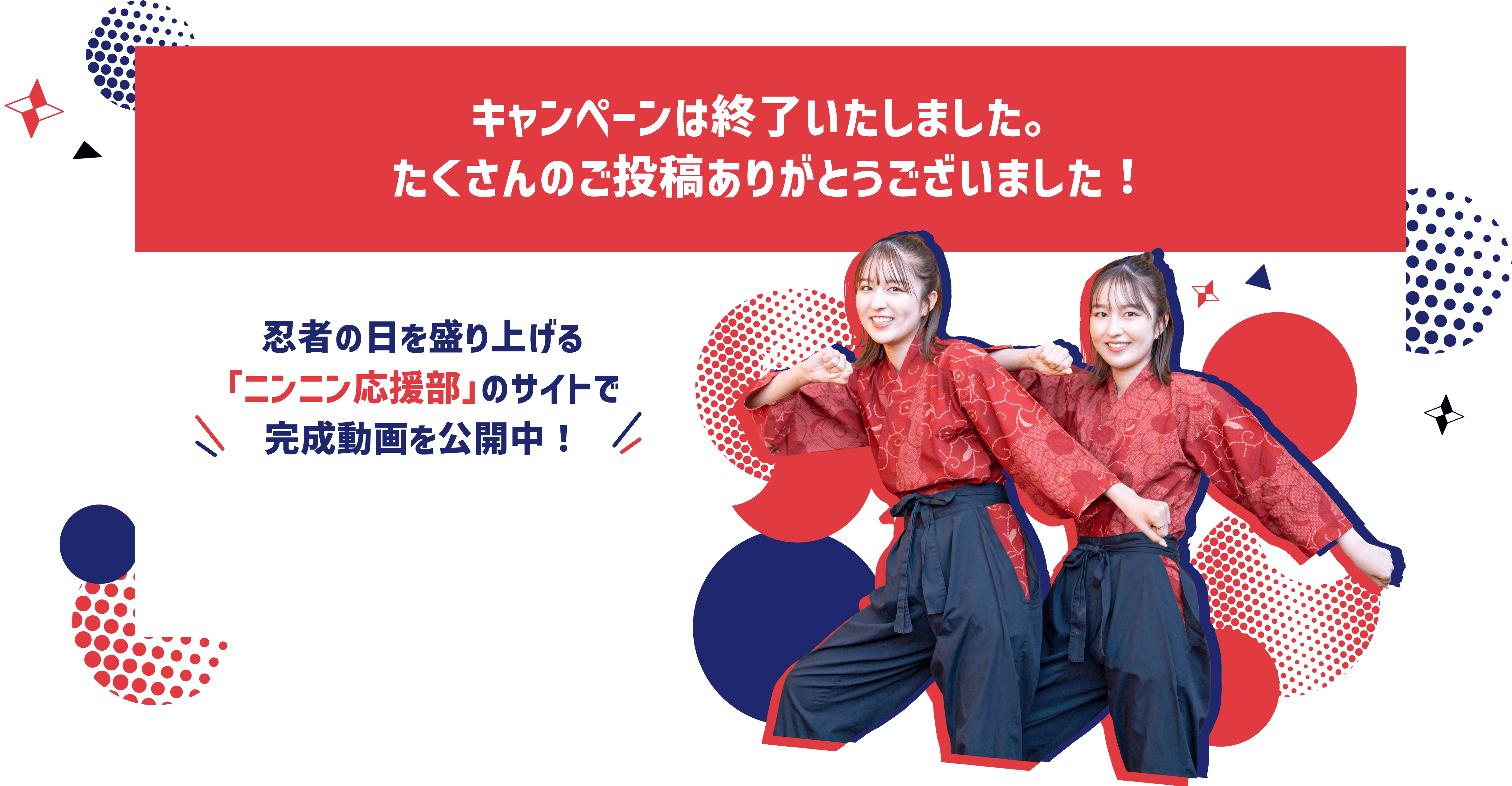 ・作品が採用された方には、「#伊賀忍者ダンス投稿キャンペーン事務局」から各SNSのDM(ダイレクトメッセージ)機能を通じてお知らせいたします。