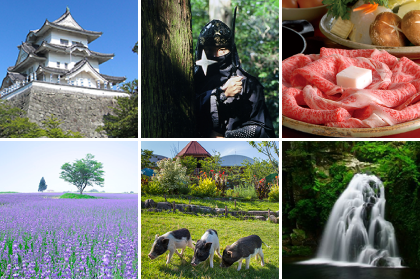 「忍者の里」として知られる伊賀上野は「伊賀上野城」をはじめとした名建築が多く、レトロな街歩きができる城下町。風車や花畑が絵葉書のような風景を作り出す「青山高原」や、可愛い動物たちと地産地消グルメが楽しみな「モクモク手づくりファーム」、マイナスイオンいっぱいの「赤目四十八滝」など、癒しスポットも充実し、お楽しみいっぱいのエリアです。