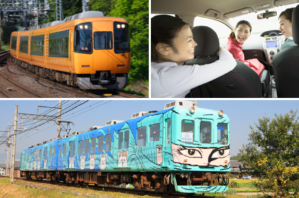 伊賀上野へ電車で行くなら「伊賀神戸駅」がゲートウェイ。近鉄特急で名古屋から約1時間20分、大阪から約1時間5分です。「伊賀神戸駅」から「上野市駅」までは伊賀鉄道で約25分。名物・忍者列車に乗れるかも?