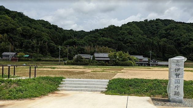 県下有数の遺跡の密度の高さを誇る伊賀市の中でも、市北東部に位置するこのエリアは遺跡が濃密に分布し、巨石を用いた横穴式石室のある勘定塚など、首長墓を含む古墳が数多く所在します。また、奈良時代後半には、「府中」の地名の由来である伊賀国庁が設置され、平安時代後期まで伊賀国の政治的中心地として機能しました。南北朝時代に守護仁木氏が拠点とし、城跡の遺構が残る楽音寺跡があるほか、戦国時代の中世城館も多数分布し、府中地区では古墳から古代、中世にいたる移り変わりを知ることができます。