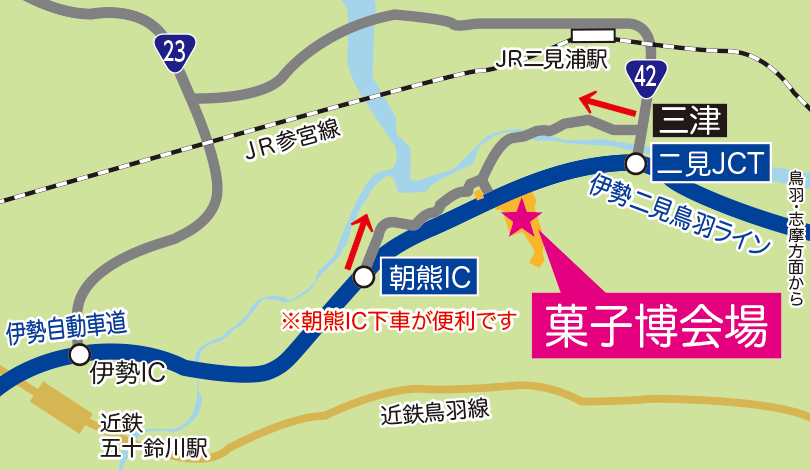 伊勢二見鳥羽ライン「朝熊IC」または「二見JCT」下車