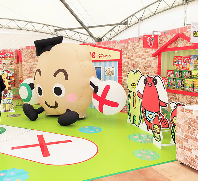 ○×クイズを通じて、楽しくカルビーの事を知っていただき、身近に感じて頂けるブースです。ポテくんバルーンがクイズの判定をします。当たっても、はずれてもみんなが笑顔になれる、そんなブースです。
