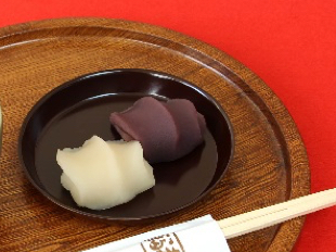通常の赤福餅と白小豆を使用した白あんの赤福餅を1粒づつ入れたお盆がお召し上がりいただけます。