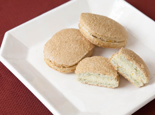 サクサクと香ばしい薄焼きの生地にバニラ、ストロベリー、チョコレートのクリームをサンドした召し上がりやすいサイズのゴーフルです。