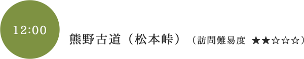 ほとんどの道に美しい石畳が残り、竹林に囲まれた峠では、等身大ほどの大きなお地蔵様が出迎えてくれます。松本峠を越えれば、浜街道を経て新宮まで峠越えはありません。かつての巡礼者が、七里御浜の向こうの新宮に鎮座する熊野速玉大社に思いを馳せたであろう場所です。