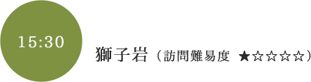 獅子岩は実は狛犬(こまいぬ)なのです。井戸川上流にある大馬(おおま)神社の「阿吽(あうん)の狛犬」で、獅子岩が「阿(あ)の巌」で、隣の神仙洞が「吽(うん)の巌」と言われています。このため元宮の境内には狛犬がなく、高さ25mの日本一大きな狛犬として、海に向かって咆哮しています。