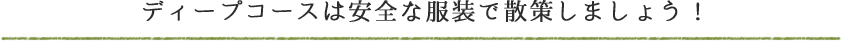 このコースは、夏場だと特に虫が多い場所であり、また聖地でもあるので、露出の大きい服装は避けましょう。また、舗装されていない道や滑りやすい道も多いので、スニーカーを用い、サンダルやピンヒールは避けましょう。