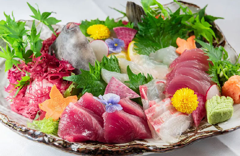 芭新萃は、漁師町である鳥羽市石鏡(いじか)町にある和風旅館で「モチガツオ」や「モチマグロ」など 漁師町ならではの鮮度抜群の海鮮料理が楽しめます。