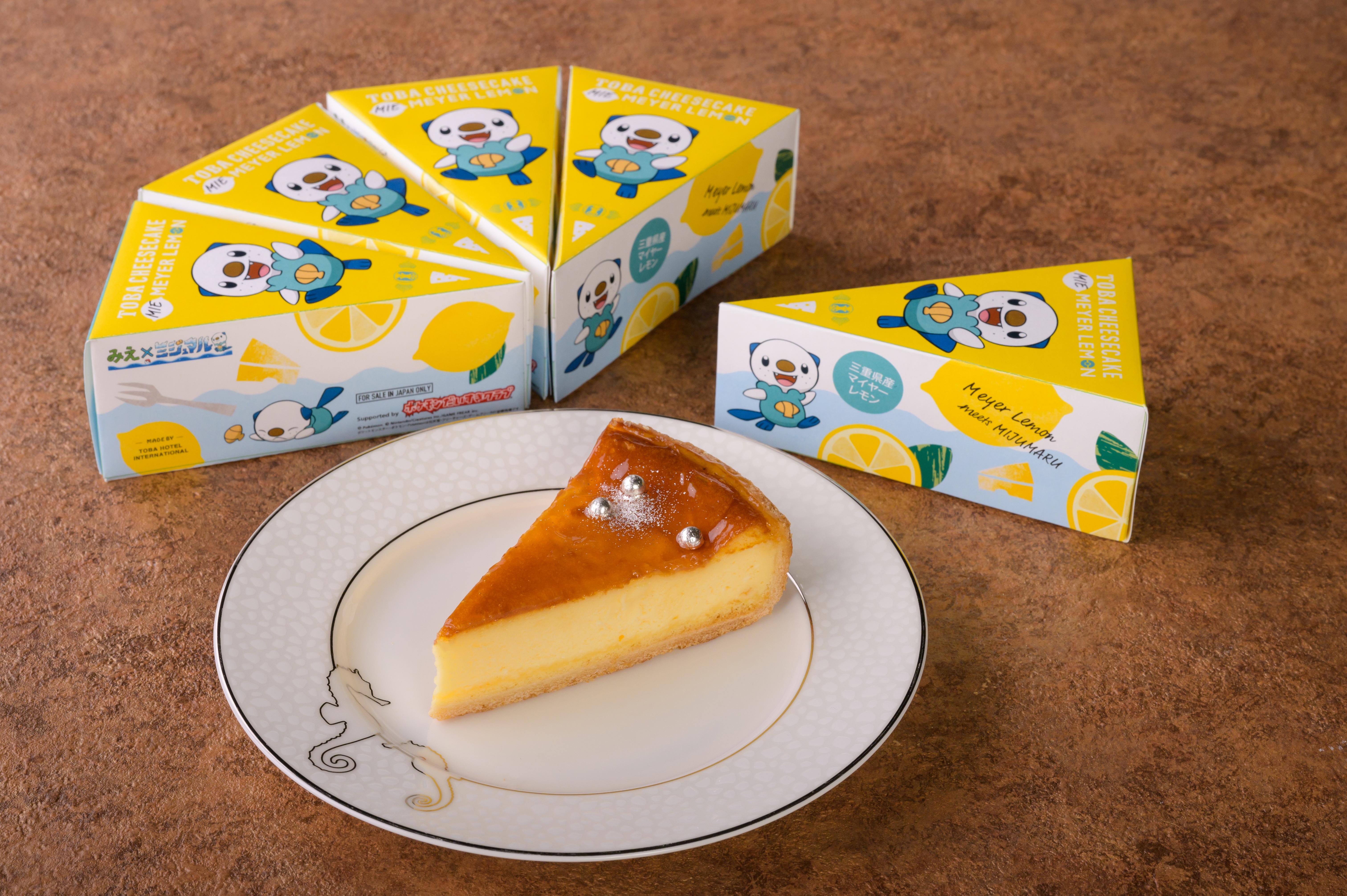 ・チーズケーキには、三重県産マイヤーレモンを使用。マイヤーレモンの酸味がクリーミーでコクのあるクリームチーズの甘みを引き出し、一口食べればお口の中に酸味と甘さが広がるバランスが絶妙です。また、みずタイプのポケモンである「ミジュマル」のイメージから、「海」らしい要素を取り入れ、ケーキの上に少量の塩を散らして焼き上げています。 - 販売場所
